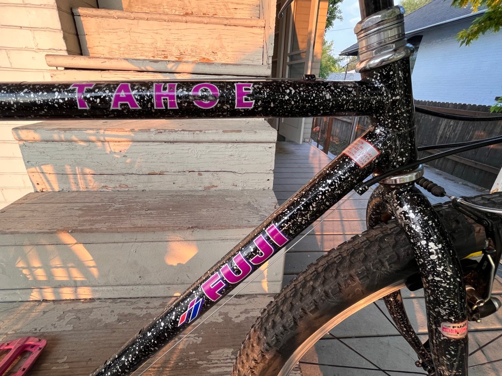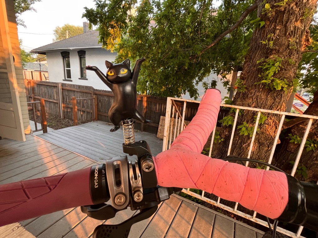 I will be riding my full steel 1991 Fuji Tahoe, purchased on KSL for $70. Now that’s what I call a deal! It was never top of the line, but she does have a truly FRE$$$H spacey paint job, which I feel really matches my ~essence~. Jack originally wanted to keep the Fuji for himself, but ultimately the frame fit me a little bit better (#blessed). I’ve really enjoyed embracing her flamboyant style and decking her out in all things pink/purple. My most favorite accessory of all, though, is my little handlebar cat (thank you Jack!), which bobbles around and keeps me in check with its sassy pose and fierce stare. You can see the photo below and you’ll understand.