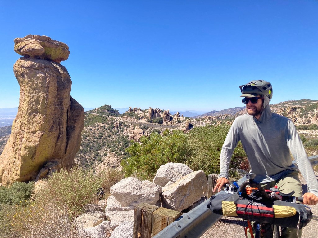We resume our story post Great Divide, post Cal’s wedding, having cast aside our pagan willow wreaths and once again donning our sticky, sticky salt encrusted helmets, with a 5000 ft paved climb up Mt. Lemmon outside of Tuscon. We got up at 4:30am and set off from the heart of Tuscon, to avoid the 102 degree heat and city traffic. Our bodies and rumpuses seemed to have lost all fitness in the 5 days we had been merrymaking, and the hot mega climb was a bit of a rude awakening. We persevered and found ourselves high in the lovely forest of Mt. Lemmon, eating plate sized cookies in the town of Summerhaven. Then we descended off the backside down the brain pulpifying Control Road and again into the blazing hot desert. We had another wedding to make it to, this time for Zoey’s cousin Tanner and partner Rachel. As opposed to the 1800 miles in 30 days we did to get to Cal’s wedding, we had a leisurely 10 days to ride 450 miles. We biked up and over a number of sky islands, tall mountains in the middle of the Arizona desert with dense forests, running water and lots of elk. We met up with our conservation corps friend Ben, who is now on a hotshot fire crew in Globe, Arizona. He took very good care of us, feeding us nutritious home cooked meals and Coors Light and then riding with us and showing us deep, cold swimming holes in the Sierra Ancha mountains. The terrain in Arizona is rough and steep, with the most elevation gain per mile of our whole trip (120 feet of elevation gain per mile including the downhill ones). We spent a lot of time pushing our bikes up and down hill. Here are some photos of the desert.